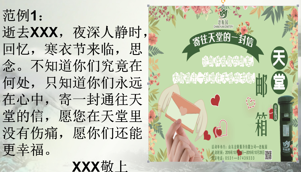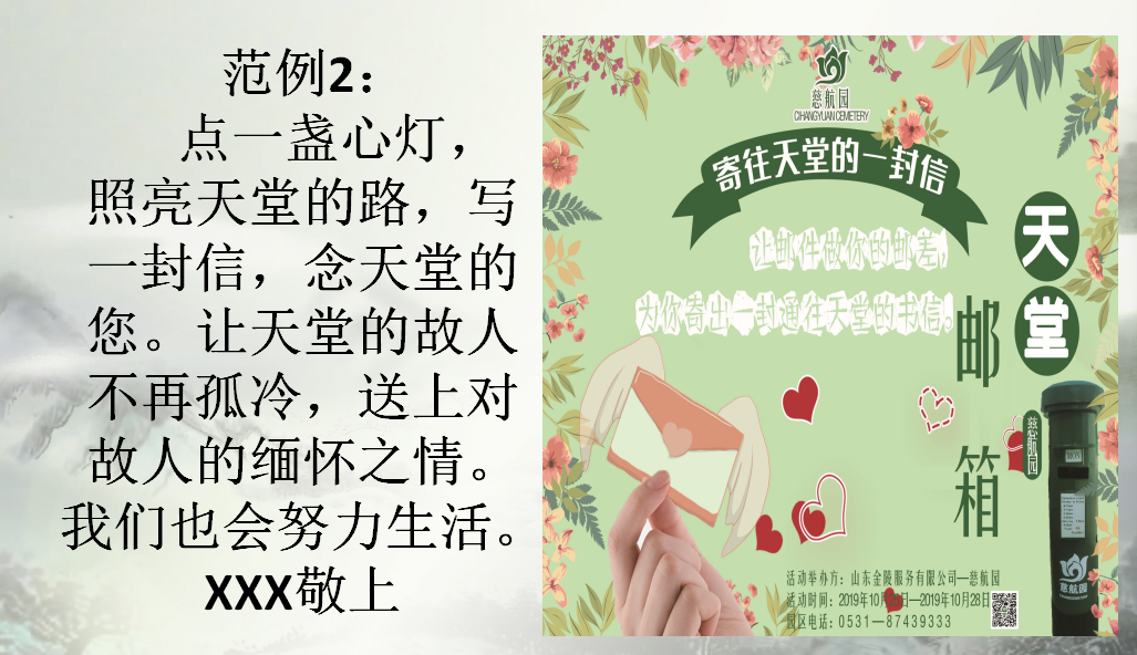 寒衣节(阴历十月一),慈航园推出了心灵邮箱传递孝心、代客祭扫、免费乘坐班车去园区活动